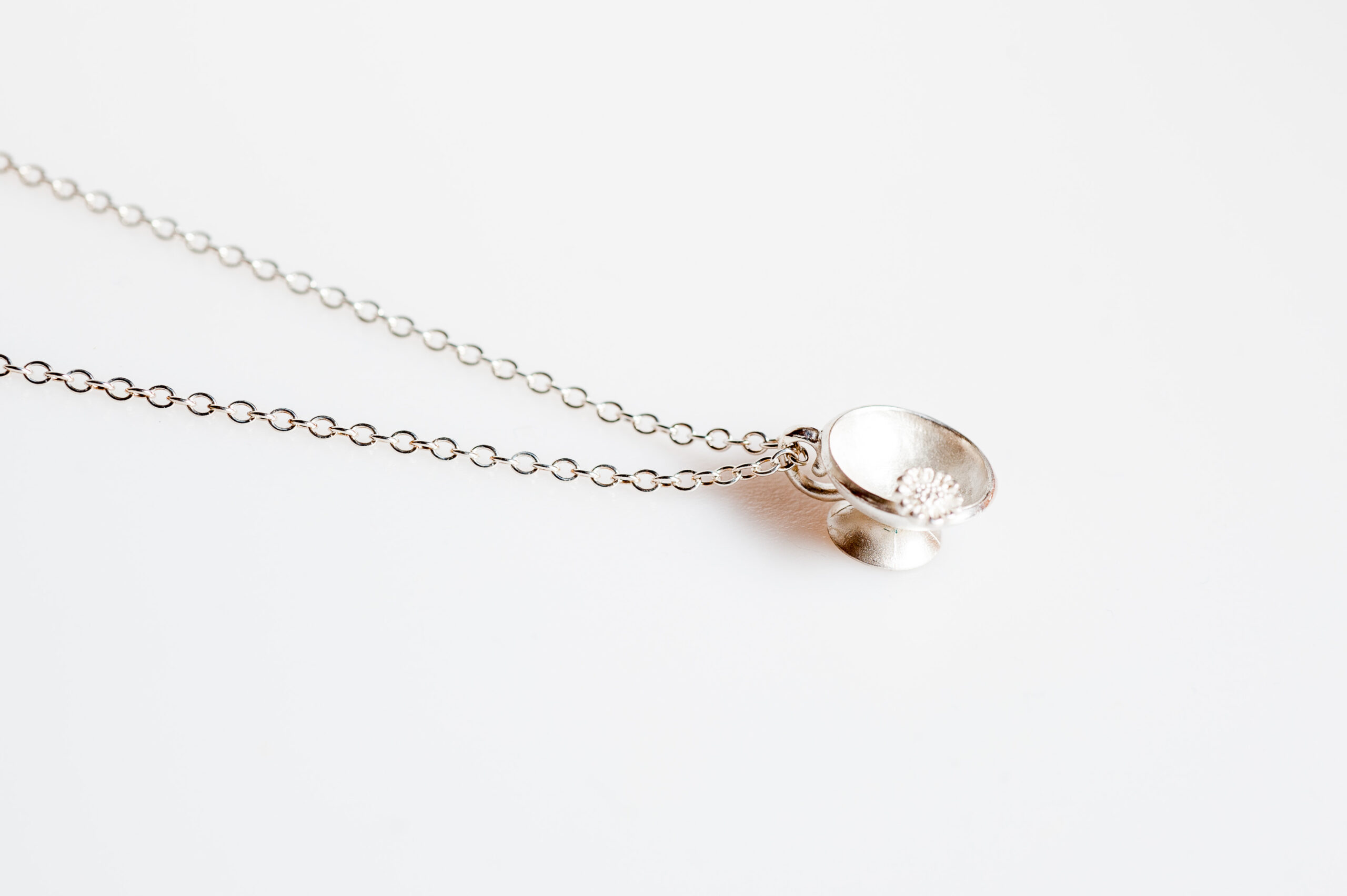 Beautifully handcrafted this sterling silver tea cup sits on a long 30″ silver chain…. Perfect for a treat or a gift to a loved one….